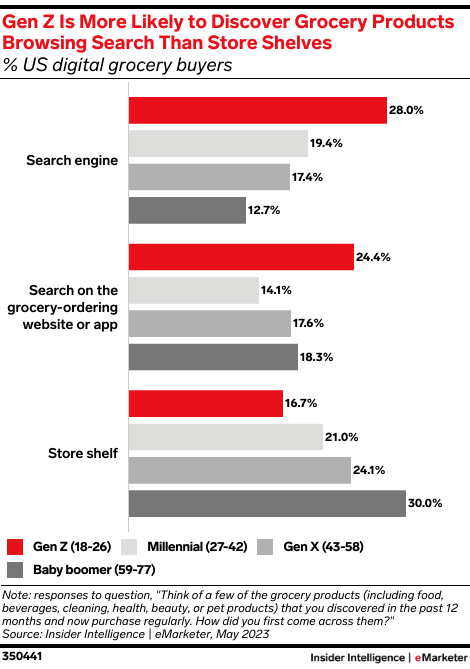 3. But Gen Z is more likely to find new grocery products through search