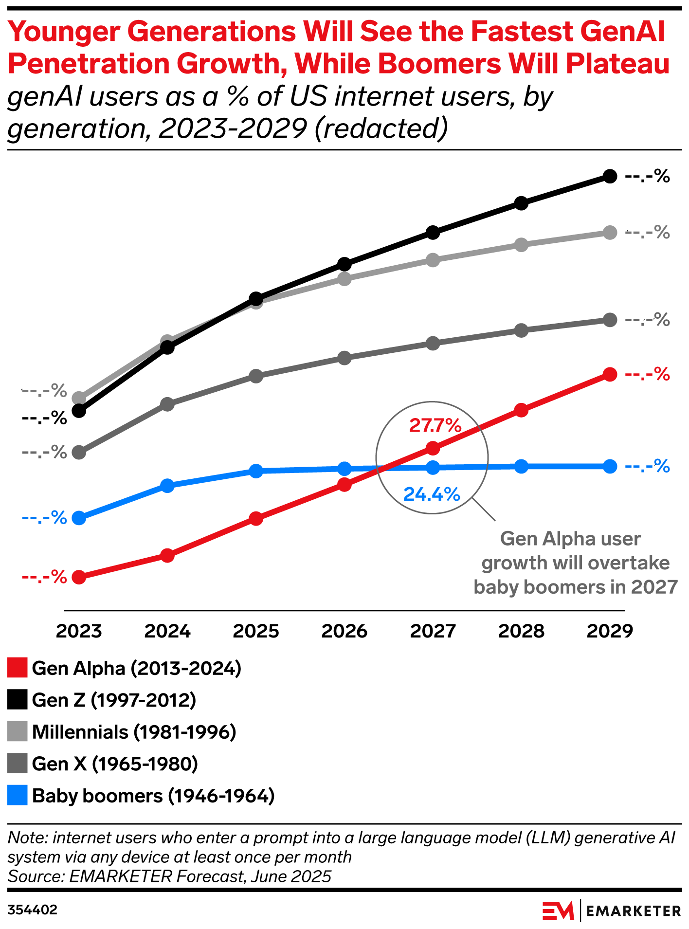 Key Stat: By 2027, Gen Alpha will surpass baby boomers in genAI usage, highlighting how quickly the youngest generation will accelerate normalization while older demographics plateau.