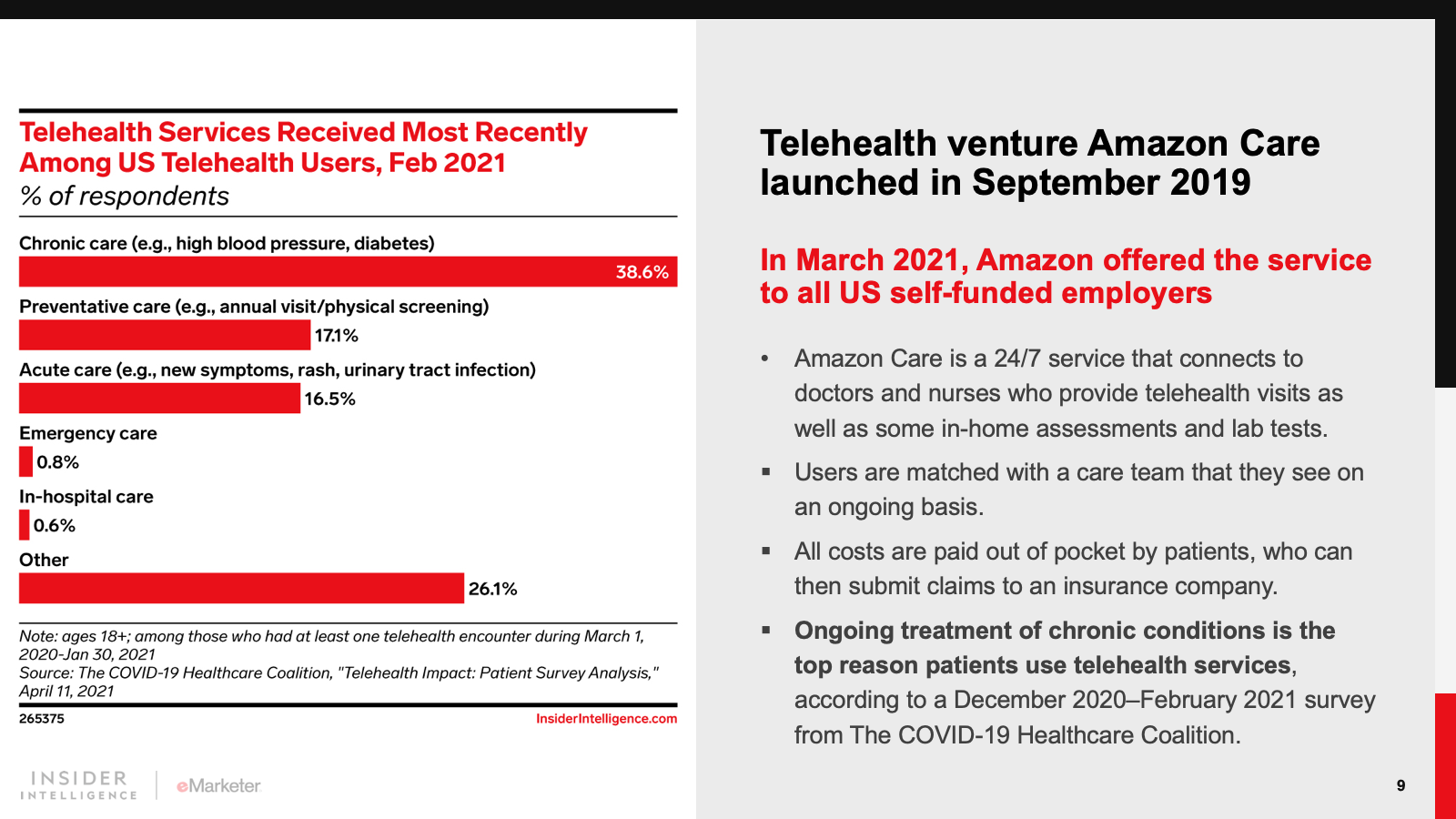 KEY STAT: Amazon owns ecommerce in the US, with sales expected to hit $386.40 billion in 2021, according to our forecast. With a market capitalization of almost $1.9 trillion as of mid-July, the company must find new areas with huge growth potential that build on its core ecommerce capability. The $4.01 trillion US healthcare market is a likely target.
