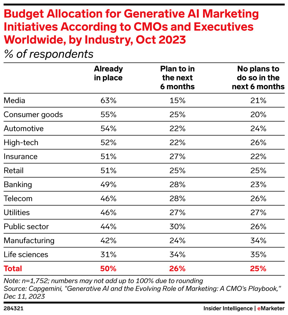 • Marketers who use genAI can augment their creativity and efficiency to deliver more relevant and engaging content to customers, per The Financial Brand.