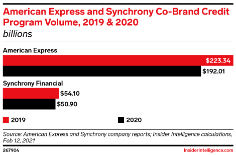 KEY STAT: Synchrony Financial’s co-brand spend declined by 5.9% in 2020, while American Express’ shrank by 14.0%. However, the sector’s share of overall business grew despite those dips, indicating its resilience.