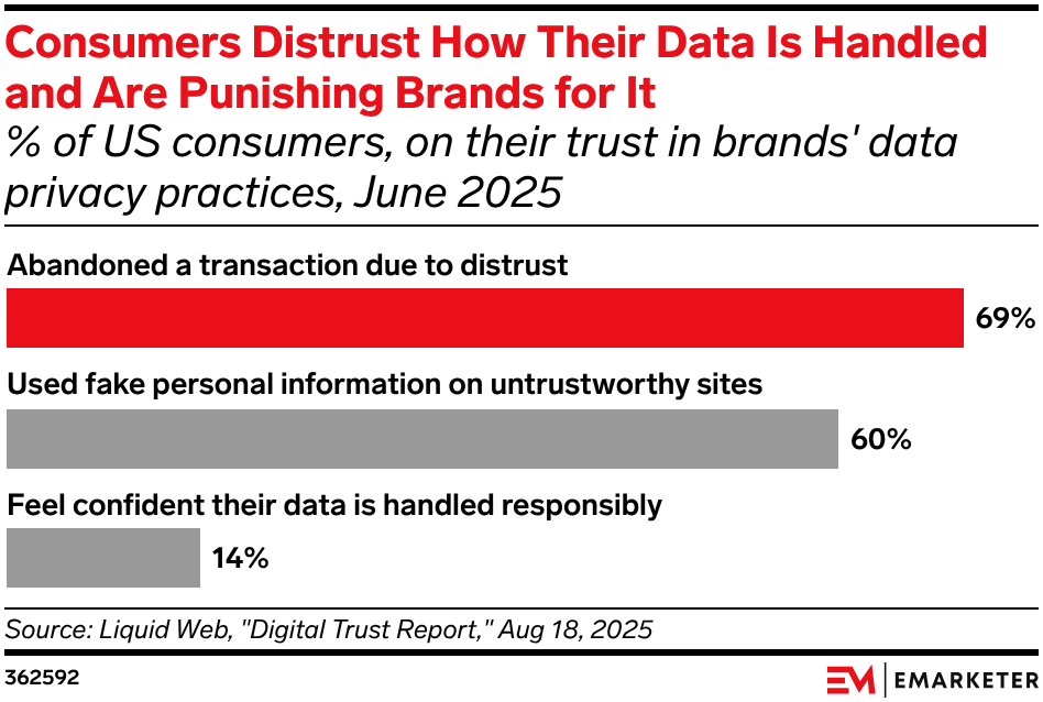 Key Stat: Among US consumers, 69% have abandoned a transaction due to concerns about how their data was used by a brand, per June 2025 data from Liquid Web.