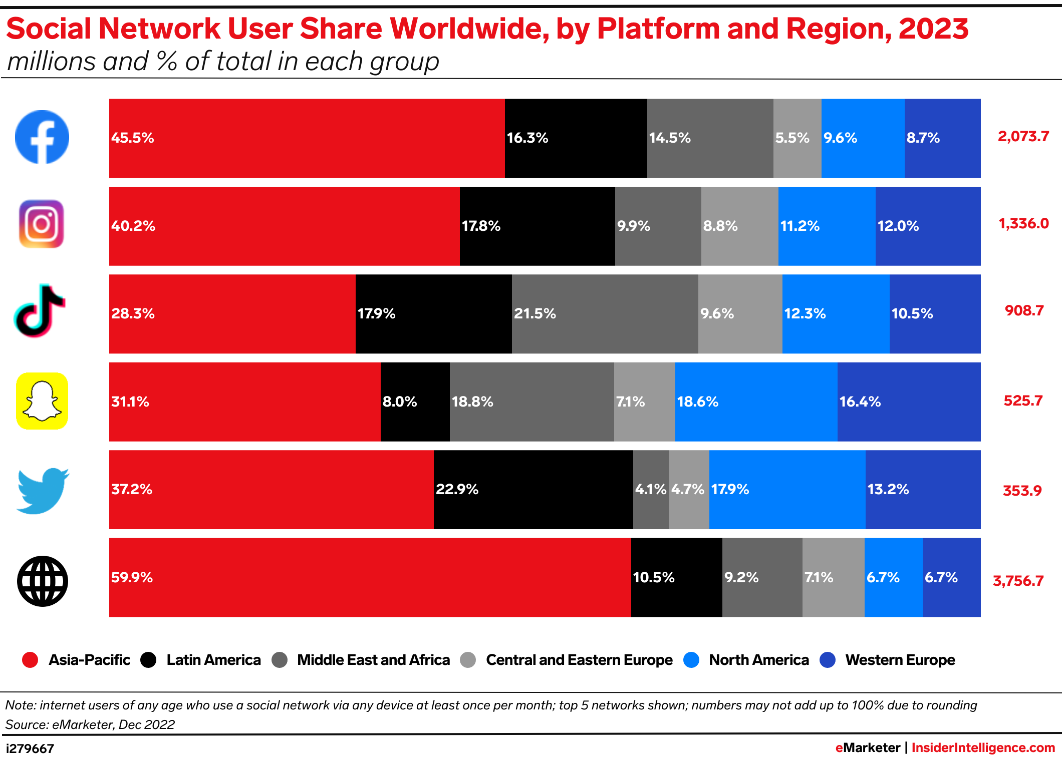 KEY STAT: Western Europe will account for just 8.7% of Facebook users worldwide in 2023. But the region will more than pull its weight among Instagram, Snapchat, TikTok, and Twitter users, with double-digit shares of the global totals.
