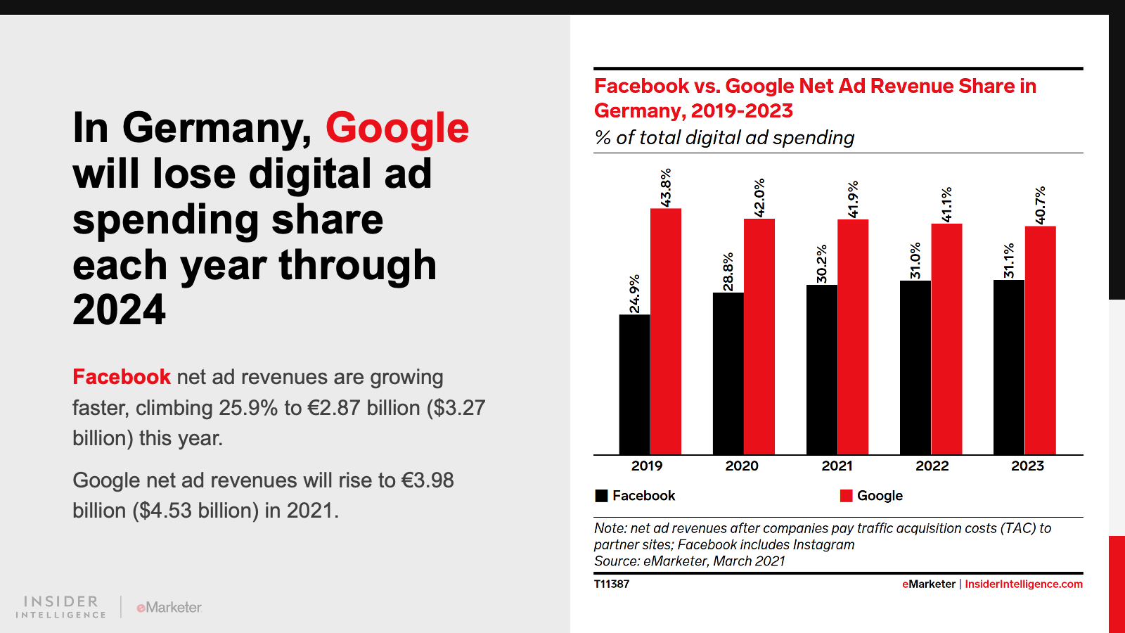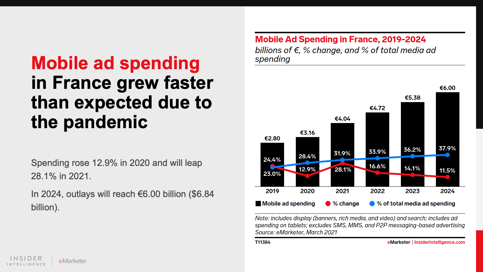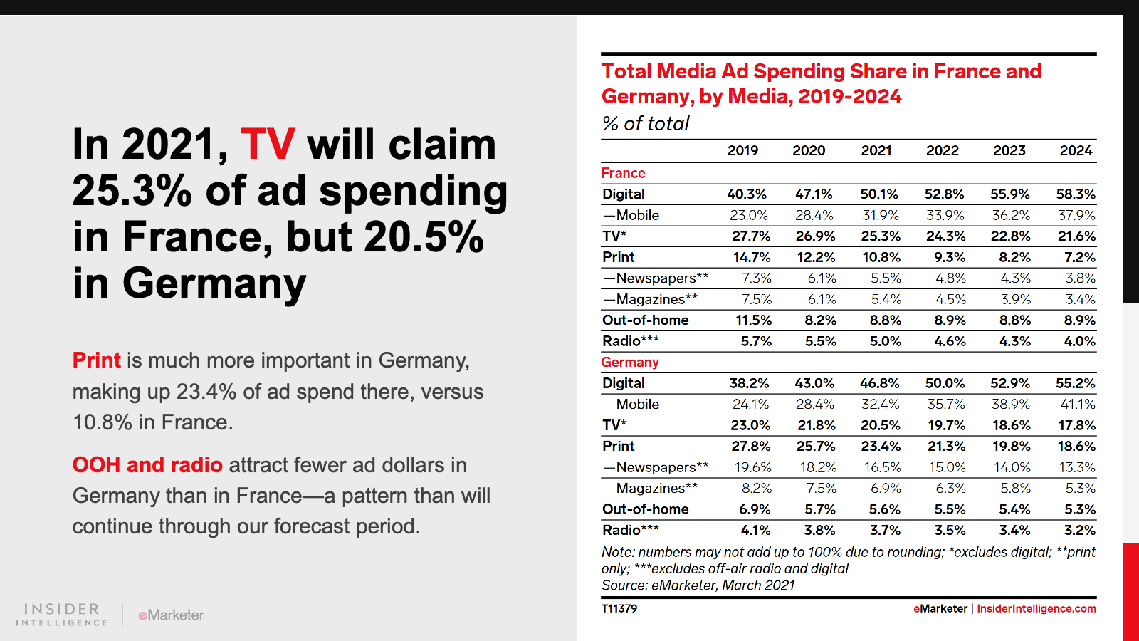 KEY STAT: In 2021, digital ad outlays in both countries will jump by double-digit rates, to reach €6.35 billion ($7.24 billion) in France and €9.49 billion ($10.82 billion) in Germany.