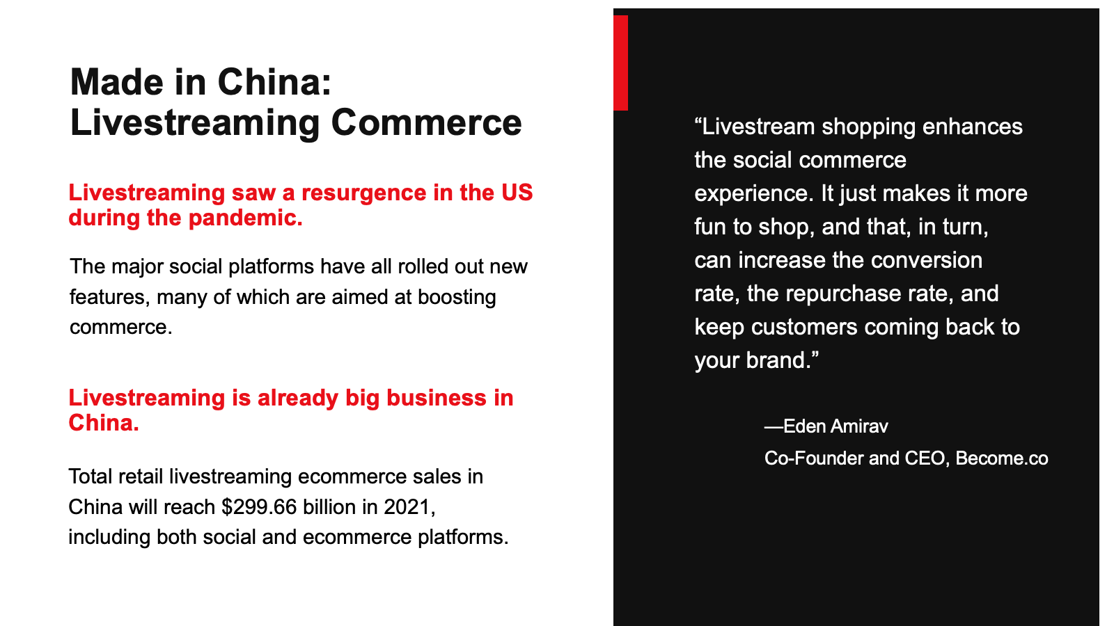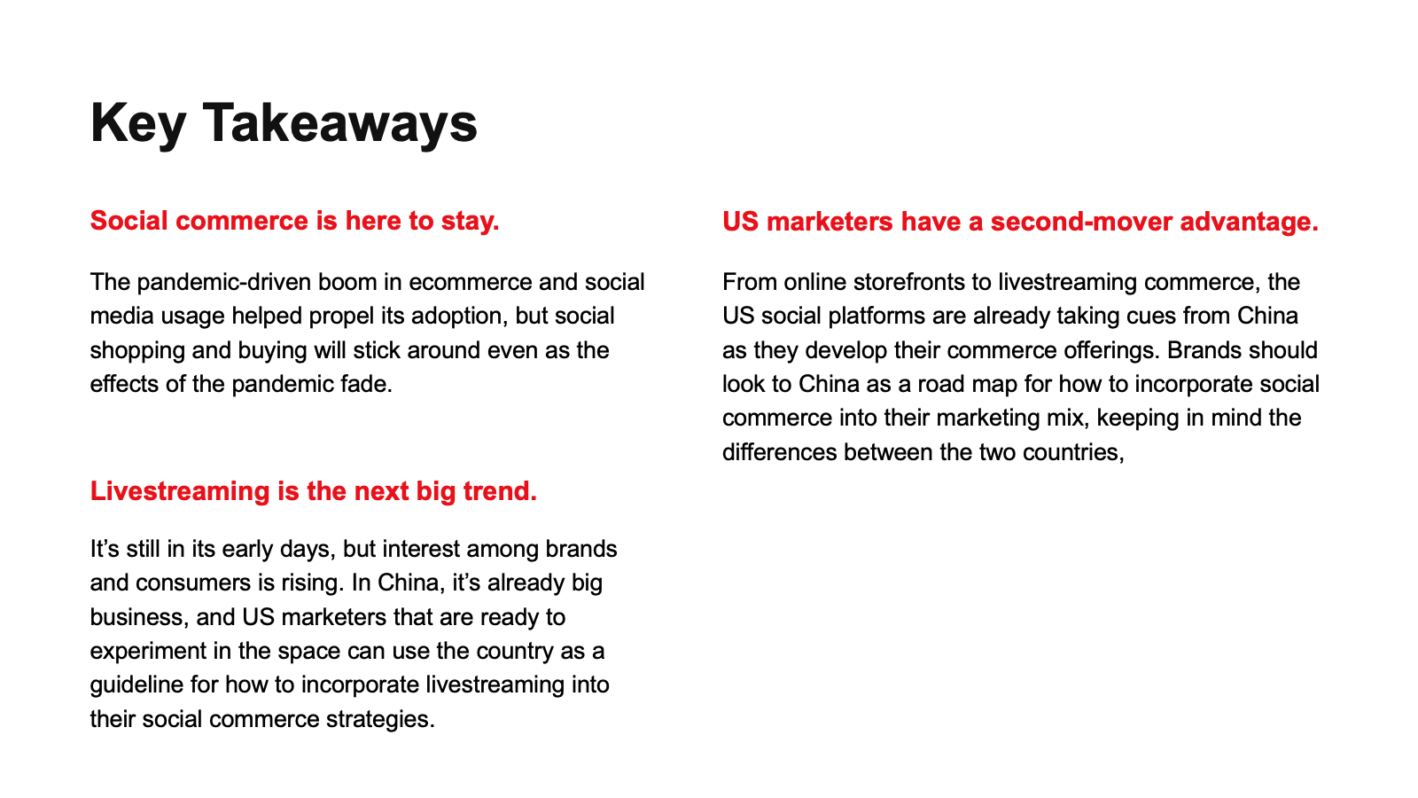 Social commerce in the US is following in China’s footsteps, but the path to success won’t be exactly the same. Here’s how US brands can use China as a road map for their social commerce strategies, including livestream shopping.
