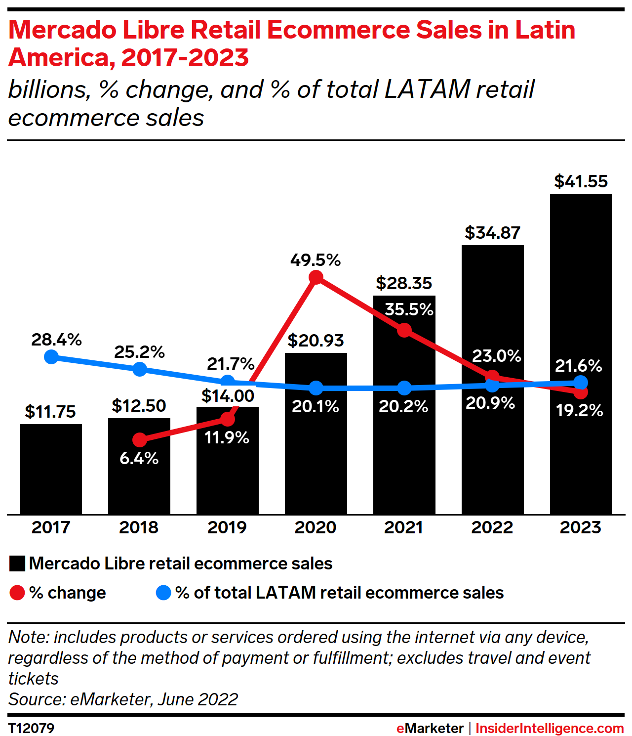 KEY STAT: Mercado Libre’s retail ecommerce business continues to grow significantly in Latin America. It will account for more than one-fifth of total online consumer spending in the region this year.