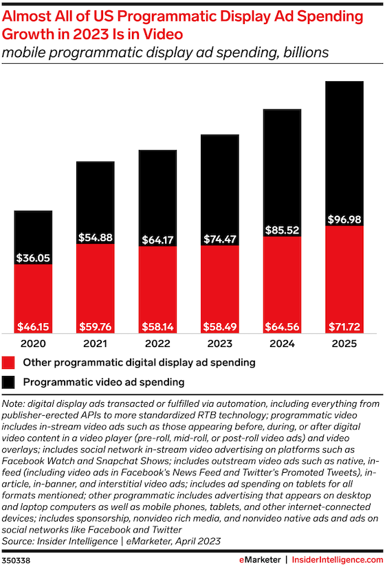 Of the $25.09 billion in US CTV ad spend we project this year, $21.52 billion will be programmatic. That means close to 9 in 10 CTV ad dollars are programmatic, and programmatic ad spend on the platform will climb by double digits through the end of our forecast period in 2025.