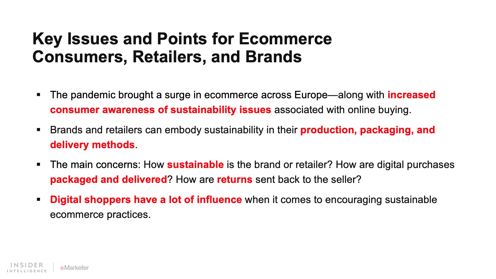 The pandemic brought a surge in ecommerce across Europe—and also increased consumers’ awareness of sustainability issues. Retailers and brands are under pressure to make online purchasing more sustainable—and both can benefit from doing so.
