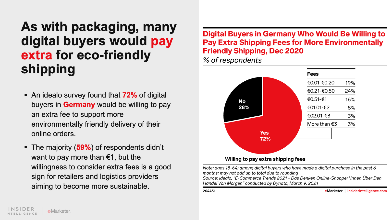 KEY STAT: In Germany, around one-third of digital buyers said they would return packaging or accept longer delivery times to make their ecommerce purchases more eco-friendly.