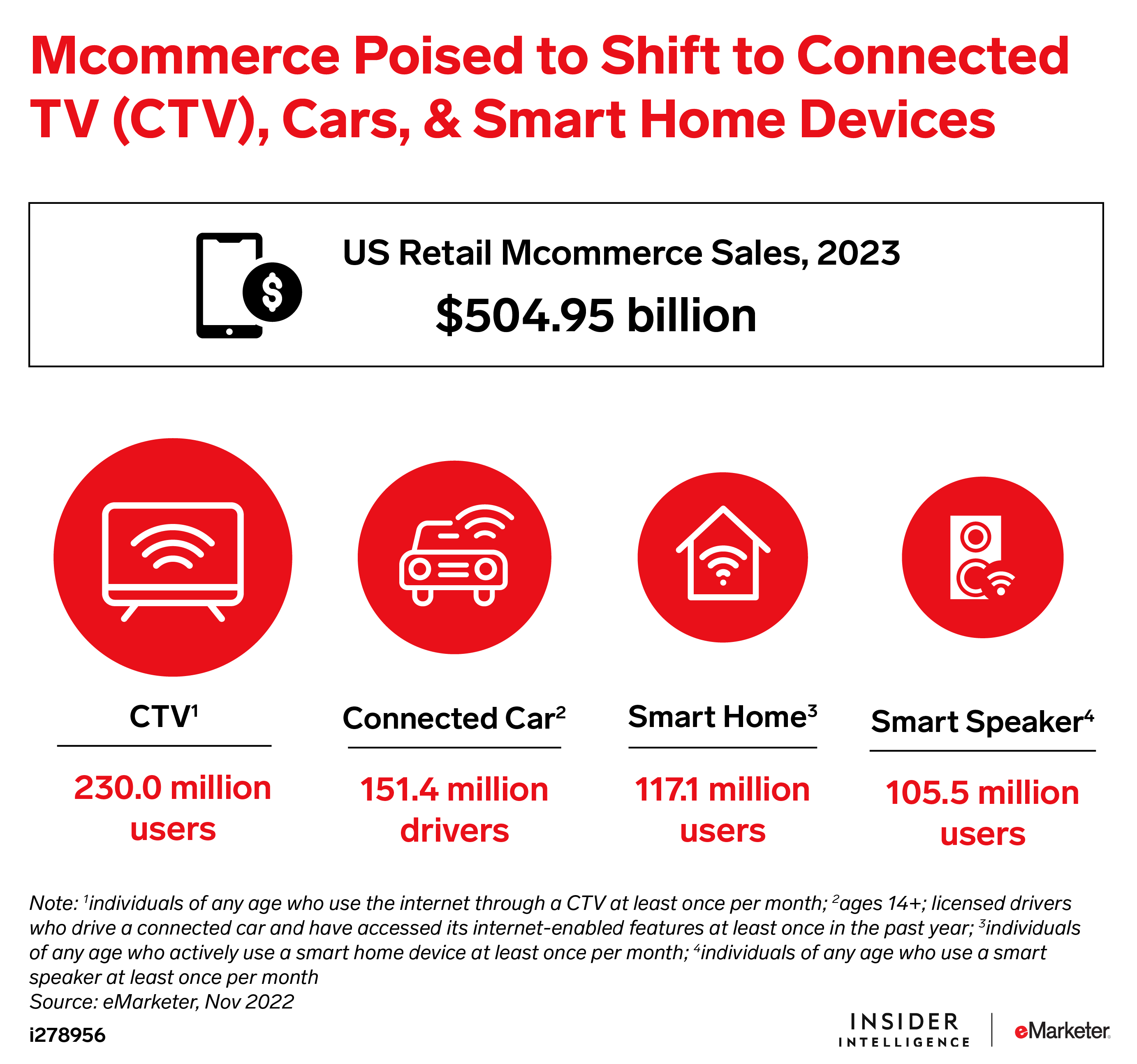 Ubiquitous IoT will open doors for commerce. Smart TVs, connected homes, and connected cars not only have proliferated, but each is also independently experiencing catalysts that will make them easier to use and more responsive in 2023. With seamless connections in new contexts, new forms of commerce should follow: