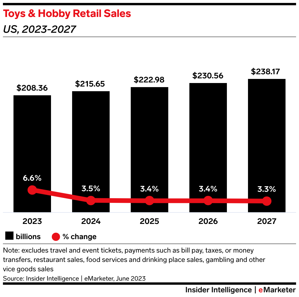 • But since WHP bought the brand in 2021, it has sought to find ways to recapture share of a still-growing toy and hobby market, which our forecast expects will grow 6.6% this year to $208.36 billion.