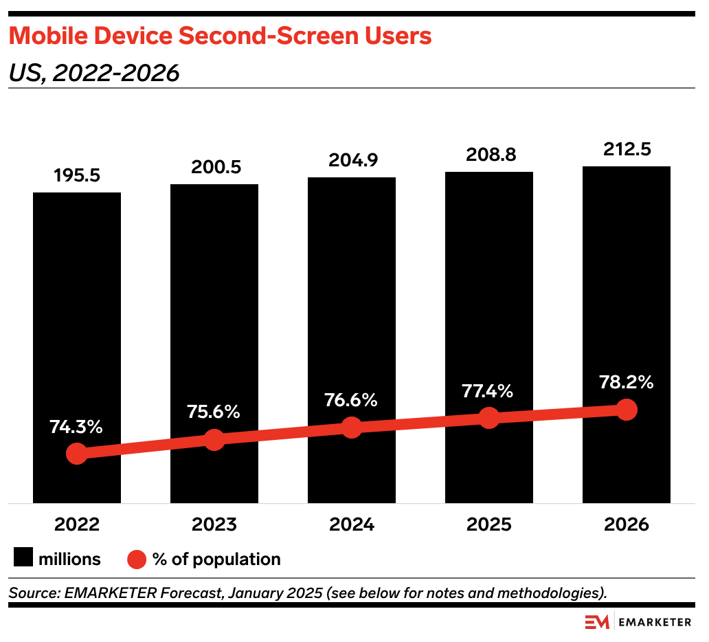 Changing the screen: YouTube is also capitalizing on the fact that most US adults—77.4%, per our forecast—use a smartphone while watching TV. Last year, it added second-screen smartphone features, including tools to leave a comment on a video that’s playing on the TV, purchase products, and adjust playback.
