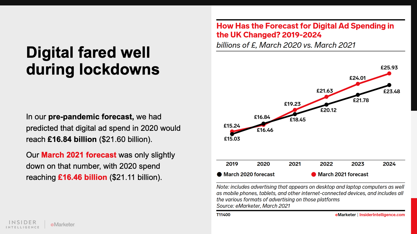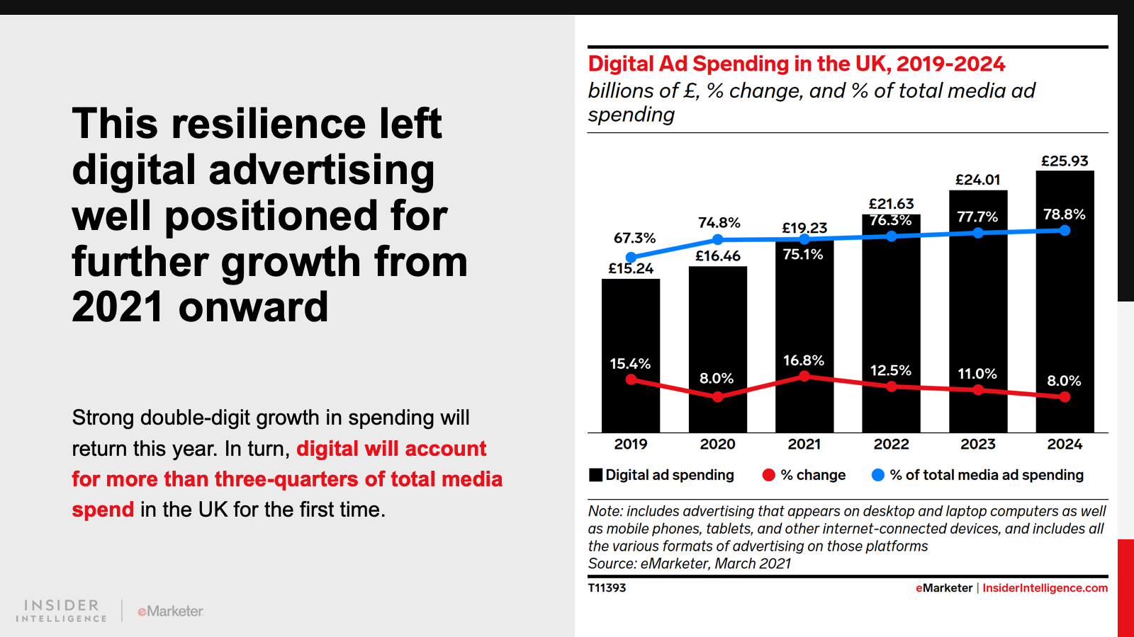 KEY STAT: Digital advertising’s better-than-solid showing during the height of the pandemic in 2020 means that this year’s total of £19.23 billion ($24.66 billion) in spend will be above our pre-pandemic forecast.