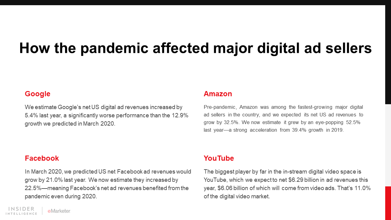 WHAT’S IN THIS REPORT? This report explores our Q1 2021 estimates of US digital ad spending and analyzes what the pandemic-related trends mean for the ad market in 2021.