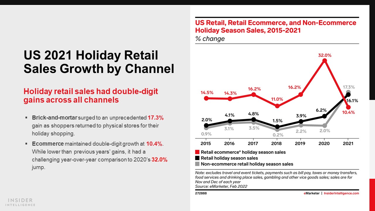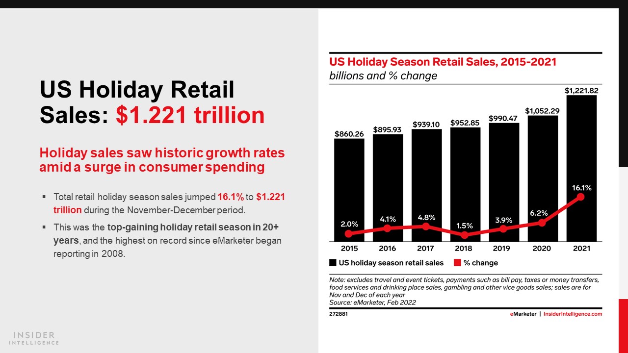 KEY STAT: The 2021 holiday season saw US retail sales grow by 16.1%, the fastest growth rate in more than 20 years.