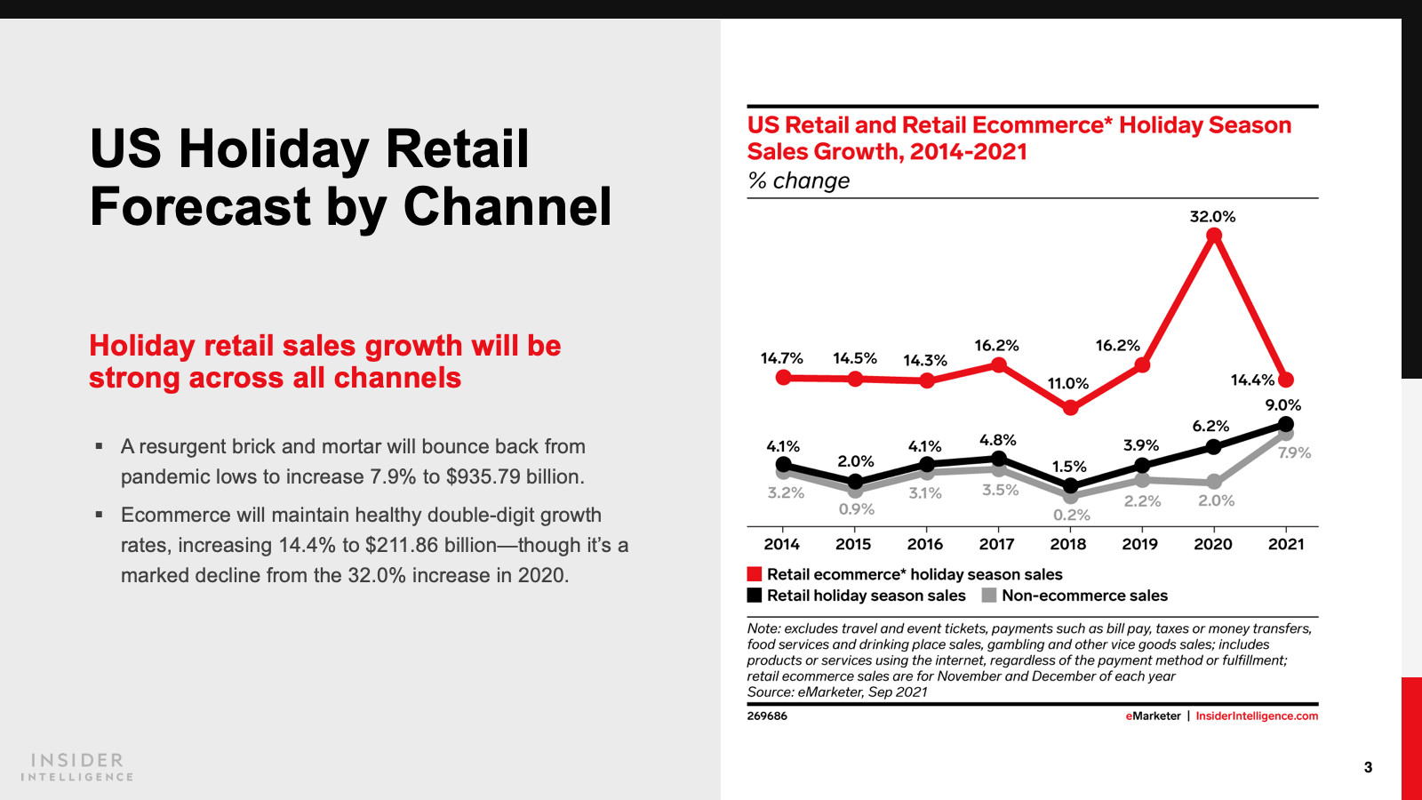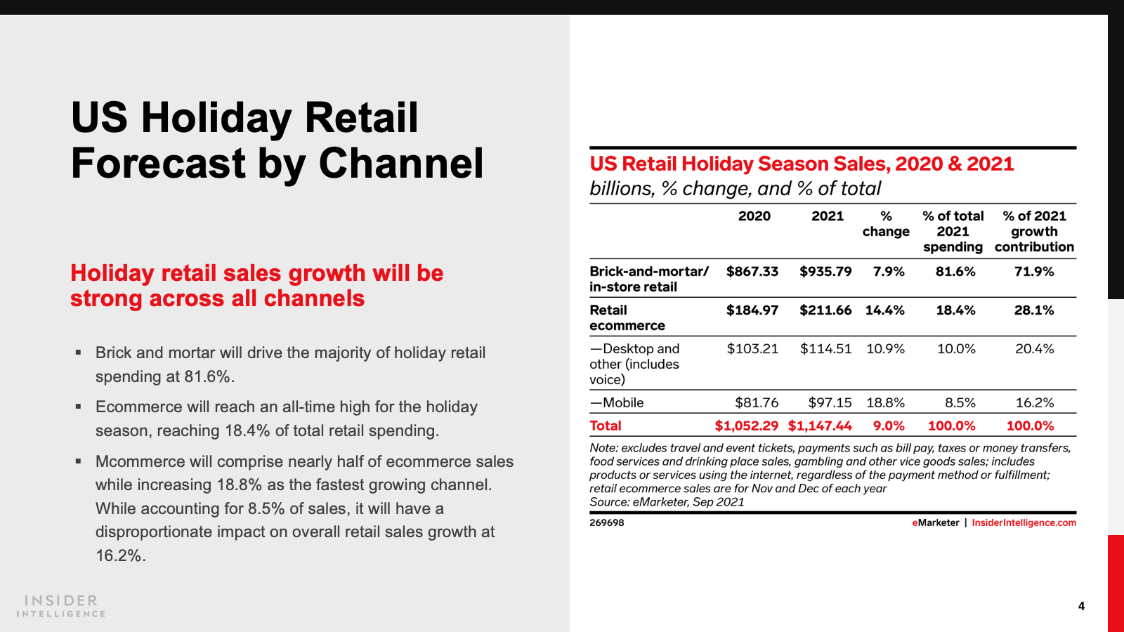 WHAT’S IN THIS REPORT? Our forecast for US holiday season spending for retail, ecommerce, and key shopping days and analysis of consumer, category, and retailer expectations for the season.