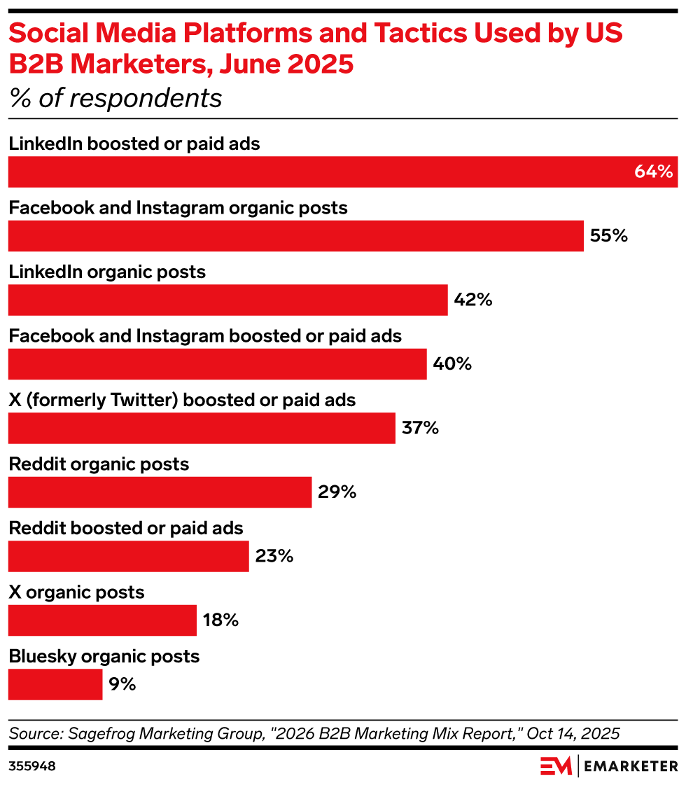 LinkedIn tops B2B campaign results, posting 121% ROAS—outpacing Google and Meta and capturing 41% of paid social budgets.