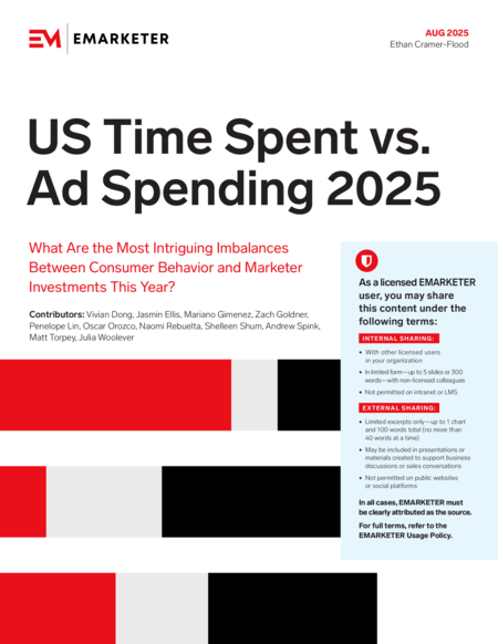 By clicking "Sign Up", you agree to receive emails from EMARKETER (e.g. FYIs, partner content, webinars, and other offers) and accept our Terms of Service and Privacy Policy. You can opt-out at any time.