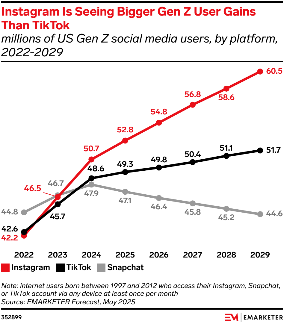 The news: TikTok is experiencing massive growth among older generations, with adoption for users 45+ growing 1,200% between 2019 and 2025, per CivicScience—suggesting its stickiness across demographics and emphasizing older consumers’ buying power. Our take: A successful social advertising strategy will strike a balance: Valuing younger demographics for their growing influence while accounting for the enduring importance of older generations for driving digital purchases as social media adoption skyrockets.